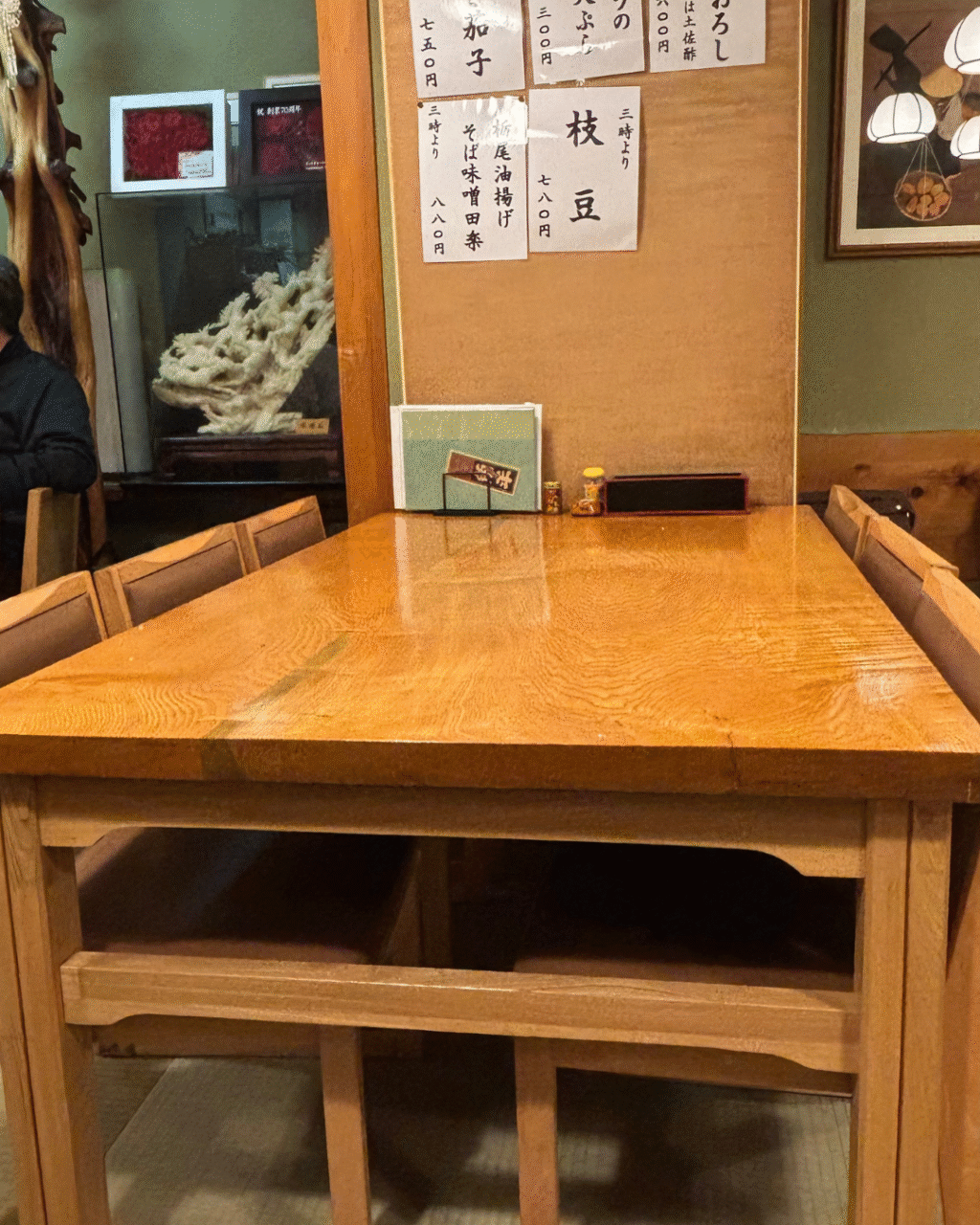 テーブルが設置されており、昭和っぽい低めのテーブル席が雰囲気が出ていて好きです。